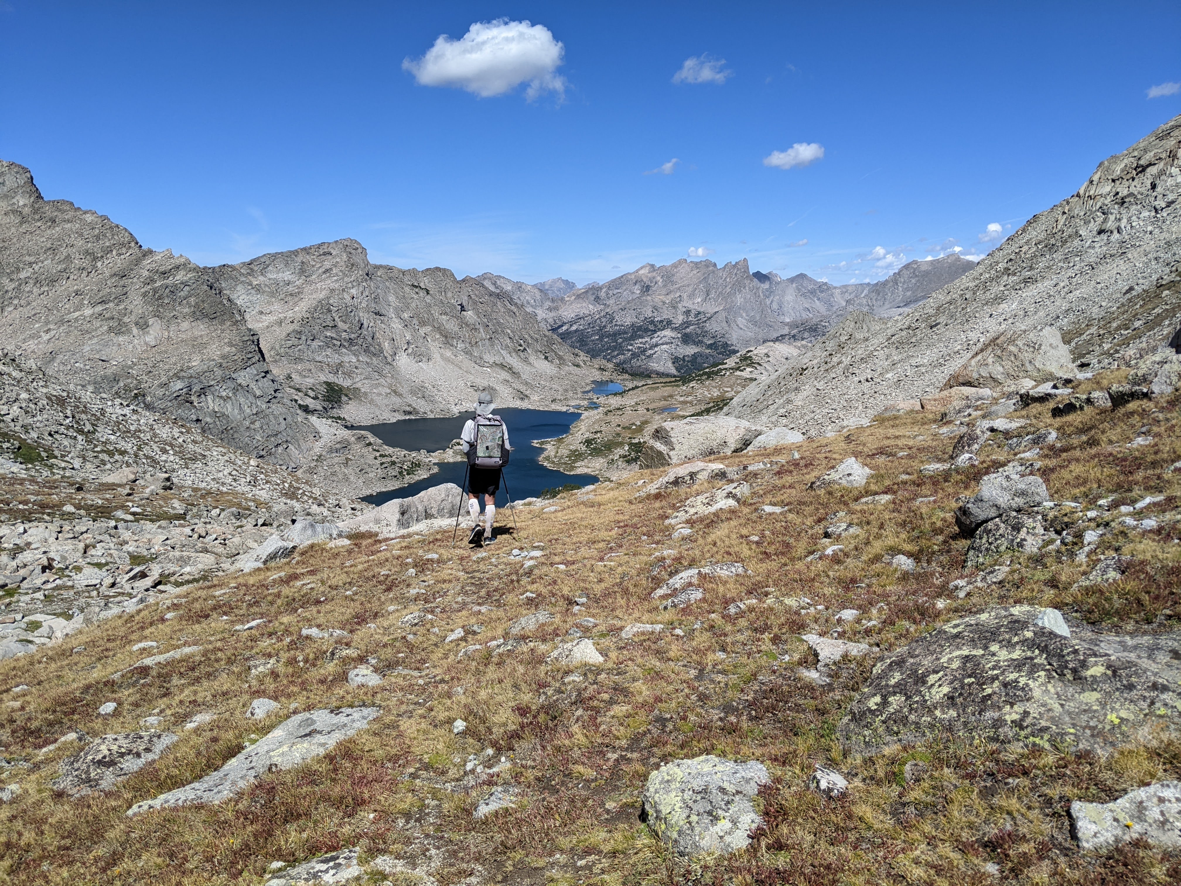 Starting our descent off Temple Pass towards the Temple Lakes.