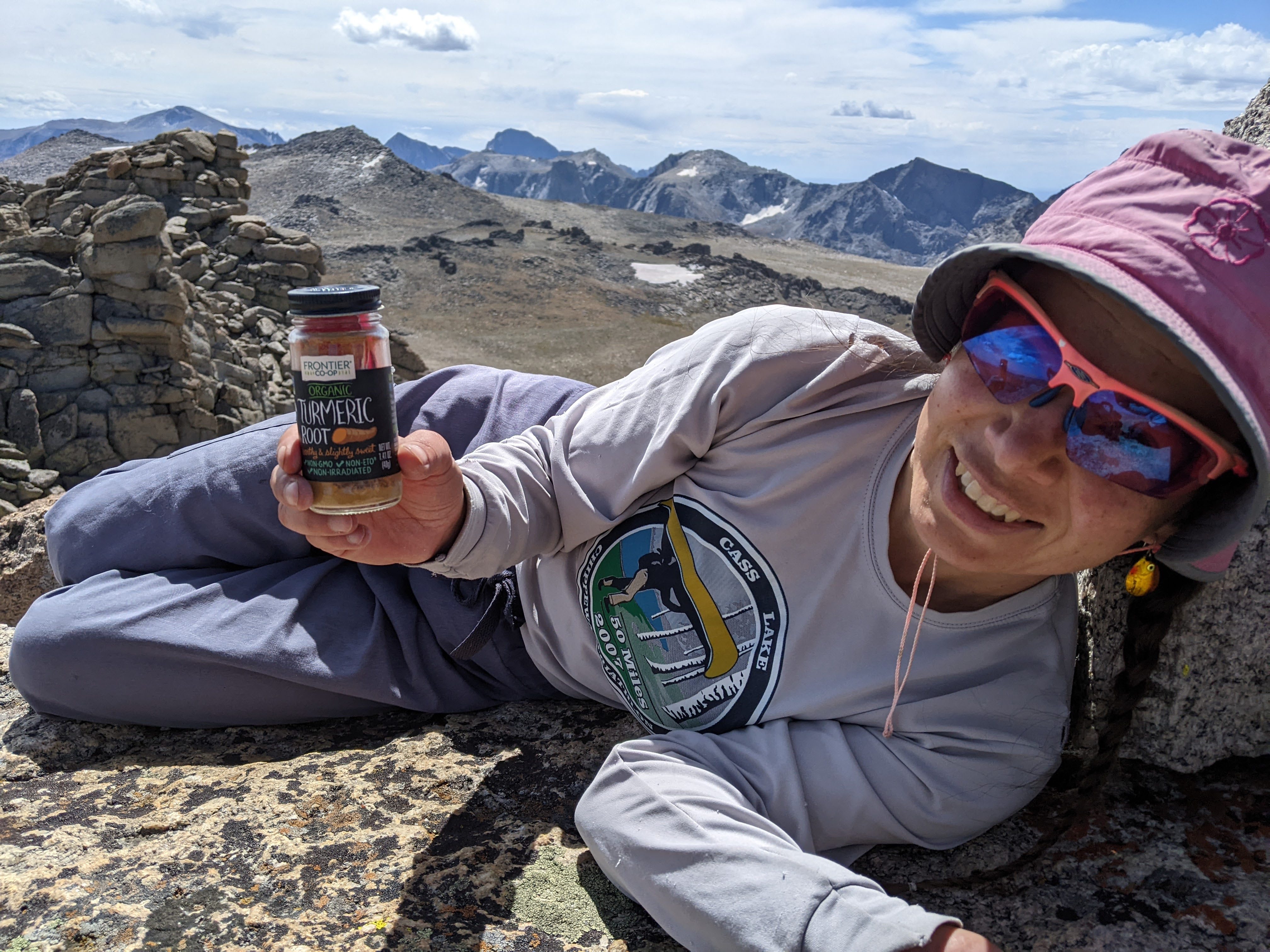 I found this summit log stuck in between the two highest rocks. I’m not sure who would hike up here with a glass turmeric jar. There was still plenty of turmeric in the jar, too. I will admit I was a bit excited to find the log, just not sure about the container.