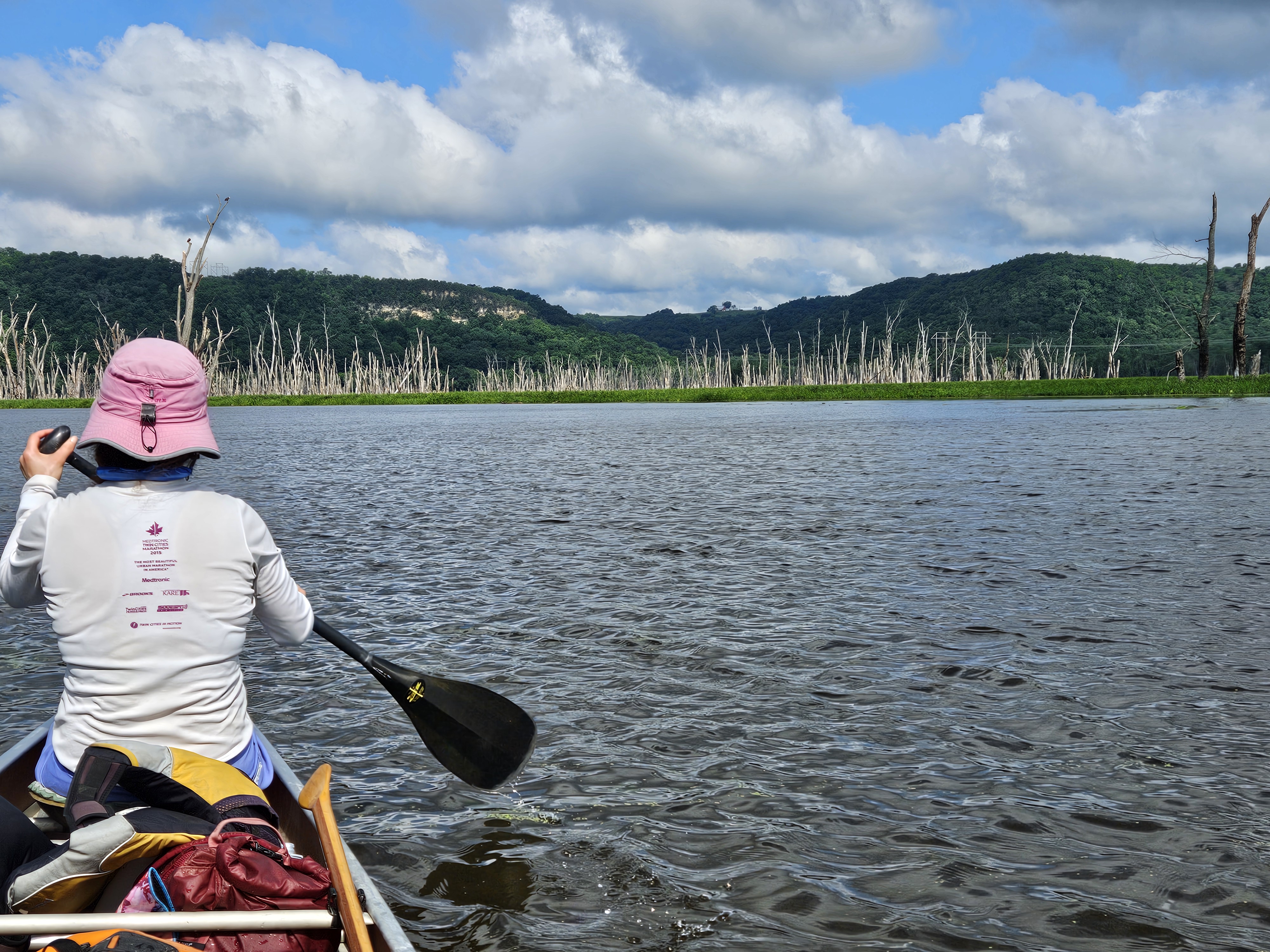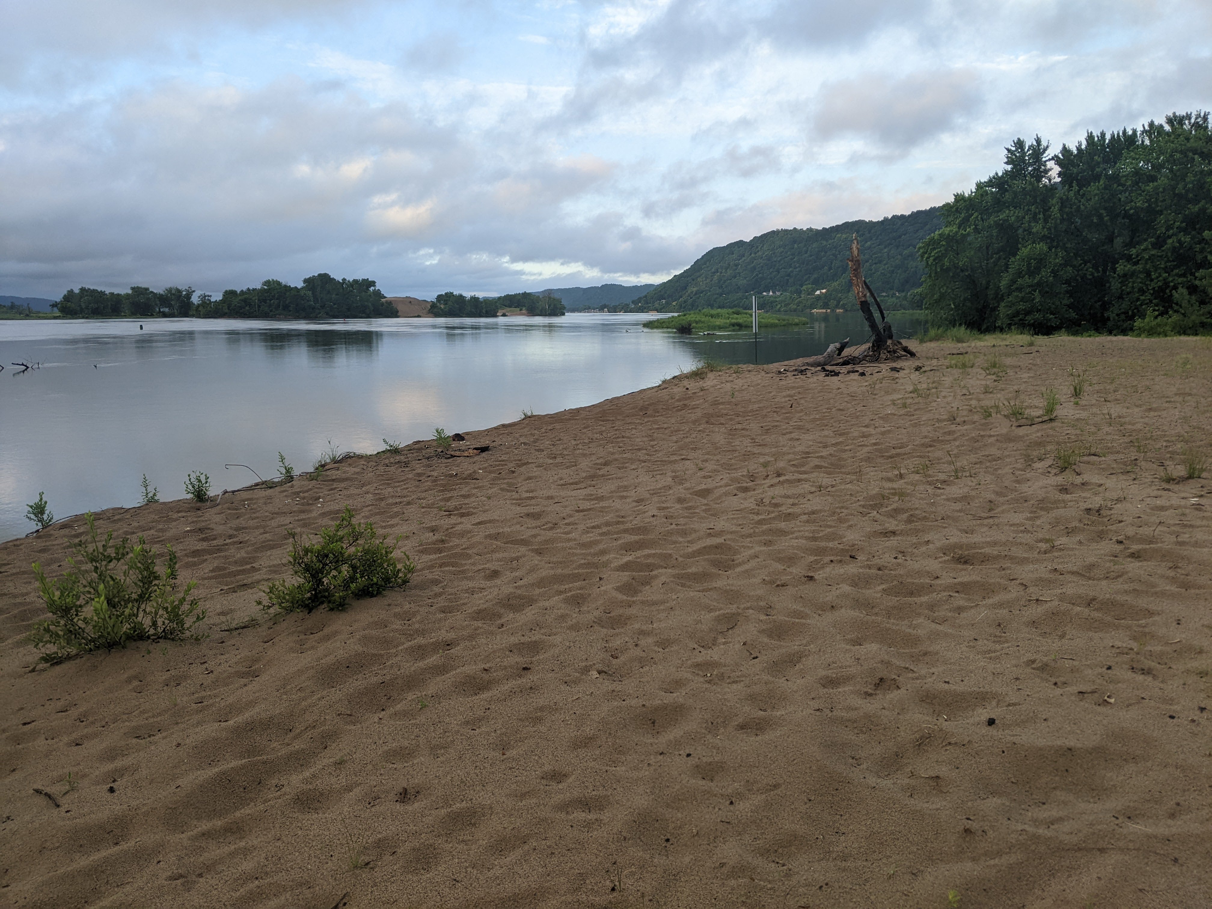 Best decisions: Filling up on fresh drinking water every chance we got, swimming when able, paddling the Mississippi during threatening skies on a stormy day and early morning when the party boat atmosphere was absent. Canoeing on the Mississippi River was much more pleasant than I was expecting, although this was largely because by the time we got to the river on Saturday, the weather predicted rain (and indeed it had been raining on and off all day) and we got an early start on Sunday and then stuck to the back channels. The Mississippi, especially the tall sandbanks, can have quite the party scene with fancy motor boats as we saw on Friday when we were driving south and again on Sunday as we drove north, both times in the mid to late afternoon.