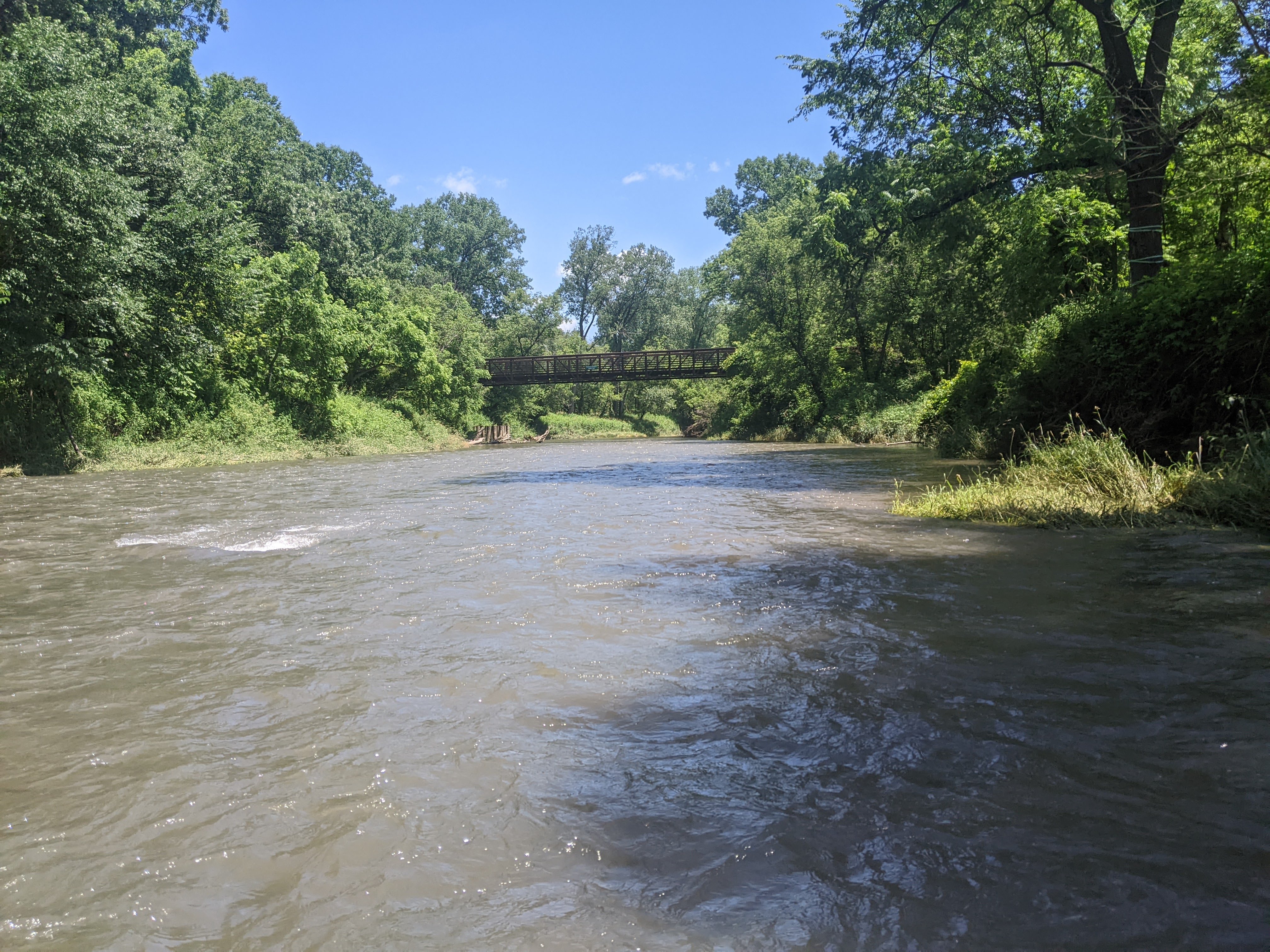 Once we got to Lanesboro, we had to portage around the dam. This is a ridiculously long portage considering that it could be significantly shorter. It was 0.4 miles to portage, but the way-the-crow-flies distance is like 300 feet. The map said to portage left but from satellite and our view, this didn’t look good. There’s a put-in just below the dam where we had locked Erik’s bike and so we portaged right, through the campground and then to the put-in, getting very close to the brink of the dam to cut down on the portage distance. After we portaged, Erik got on his bike and rode the Root River Valley Trail back to our car in Preston. He then drove a bit farther downstream, to the town of Whalen proper (where there weren’t any signs for “No overnight parking” like at all the canoe landings) and then biked back to Lanesboro. This all took about 2 hours.