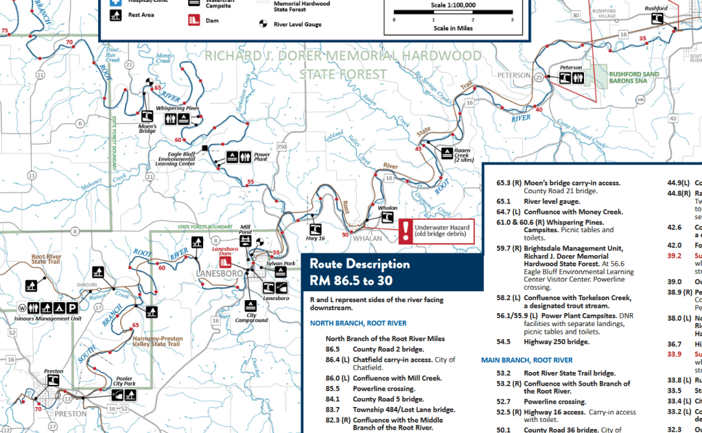 We paddled the North Branch back in 2015 (specifically 5/1/15 and 5/2/15). After driving to Chatfield and locking up our canoe and paddling gear, we drove to Whalen where we left our car and got on our bikes. For most of the Root River there is an accompanying paved bike trail. We took the bike trail as far as Fountain, where it ends, and then hopped on some county roads to get back to Chatfield.